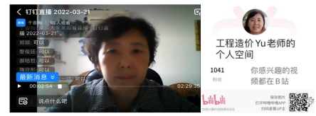 于香梅老师讲授《建筑工程计量学》,该课程需结合实际案例工程开展教学,会用到除教材以外的大量资料,为保证教学质量,采用“一主多辅”的线上教学平台,以钉钉直播为主,超星学习通、哔哩哔哩为辅进行教学。