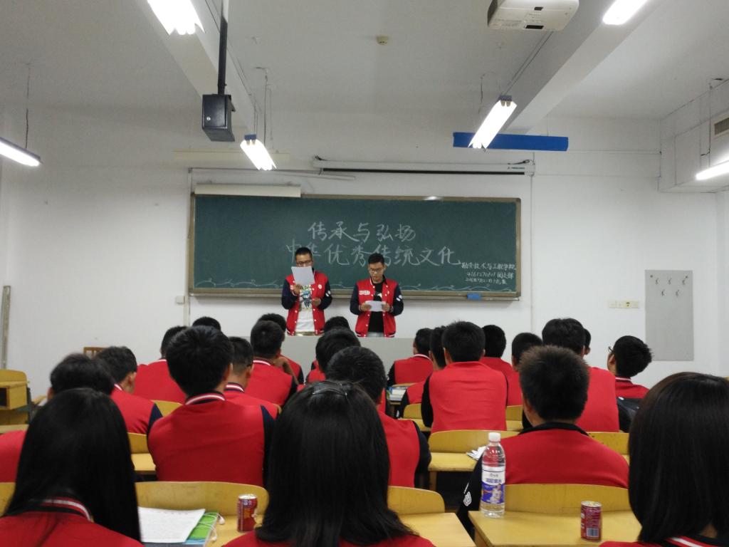 秉承“弘中华传统之美德,扬优秀文化之光辉”的宗旨,各班团支部积极筹备,广大同学积极参与,活动形式丰富,内容精彩纷呈,不论是主题演讲、诗朗诵,还是唱歌等活动,都赢得了同学们的热烈掌声;学习“见义勇为好青年,满满正能量”事迹也蔚然成风。