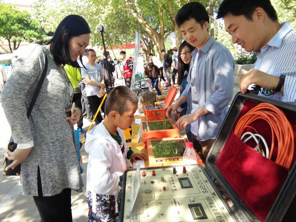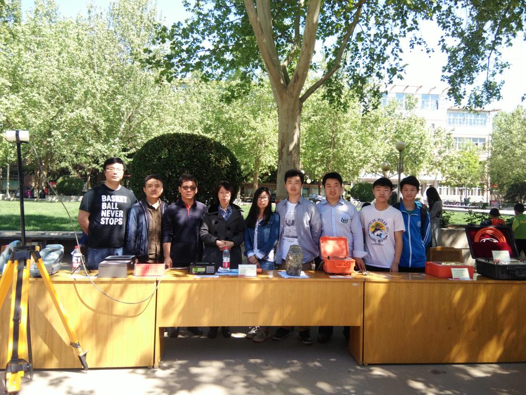 2017年4月22日,河北省第48个世界地球日主题宣传活动在我校举行。我院袁颖副院长组织实验中心、地球物理学教研室和学生科协参加了签约赠书活动、科普报告会、科普展览三项活动,将地球物理勘探仪器进行了现场展示,参加活动的小朋友及广大市民可亲自动手操作实验设备,体验地球环境探测的乐趣,帮助树立保护地球、爱护环境的意识。