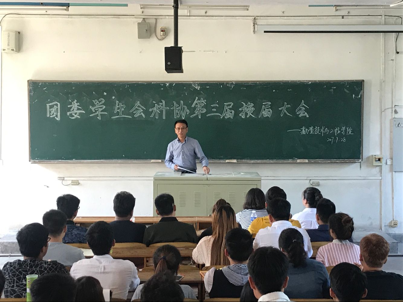9月28日,勘查技术与工程学院团委学生会科协在教学楼211举行换届大会,出席此次大会的有勘查技术与工程学院党总支书记黄万顺、团委书记朱晓玲,学生会指导老师王东东,科协指导老师裴文思,白志贤老师以及全体学生干部。