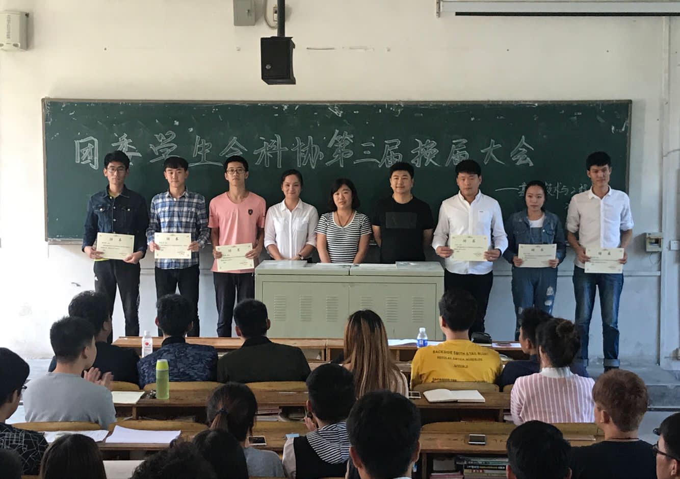大会首先由黄万顺书记致以精彩的开幕词,黄书记充分肯定了上一届的工作,同时对新一届干事的工作提出了要求,做出了展望,随后由即将卸任的团委副书记,学生会主席,科协主席分别进行了卸任发言,朱晓玲老师,王东东老师,裴文思老师为新上任干部颁发聘书。最后,黄书记对本次大会做了意义深刻的总结发言,表示对各位学生干部寄予厚望,希望大家扎扎实实地开展工作,用行动来证明自己的能力。