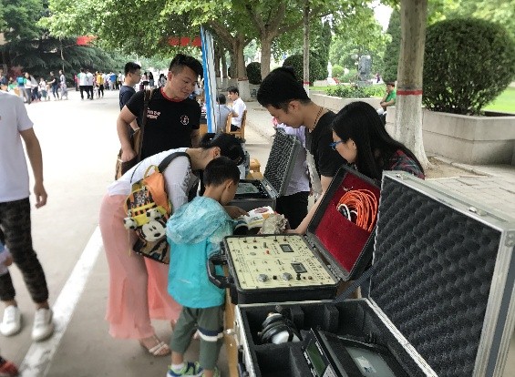 5月19日,我校开展了2018年河北地质大学科技活动周之“走进高校”活动。我院对照王凤鸣校长对本次科技活动周工作提出的要求,认真组织了实验中心、地球物理学教研室和学生科协参加此次活动,活动展示了多种地球物理勘探仪器,如多功能电法工作站、瞬变电磁勘探系统、磁力仪等。参加活动的在校大学生和广大市民在专业教师的指导下亲自动手操作实验设备,体验地球探测的乐趣。此次活动将我院特色科技资源对社会进行开放共享,充分弘扬了我校“仰山之高、慕水之善”的校园文化精神,切实体现了高校在推动社会科普工作发展中的积极作用。