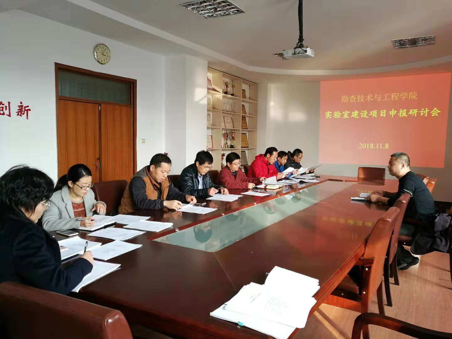 2018年11月8日,勘查技术与工程学院召开了2019年度实验室建设项目申报研讨会,会议由硕良勋院长主持,学术委员会全体学术委员、教学秘书及实验中心主任参加了会议。
