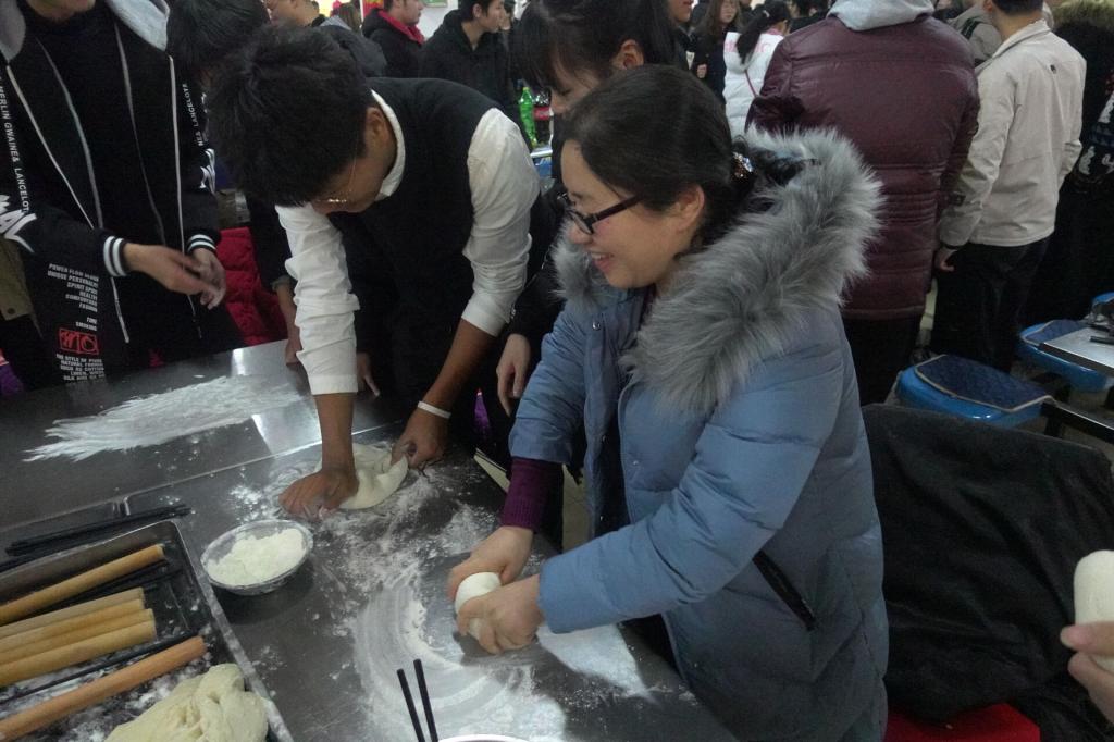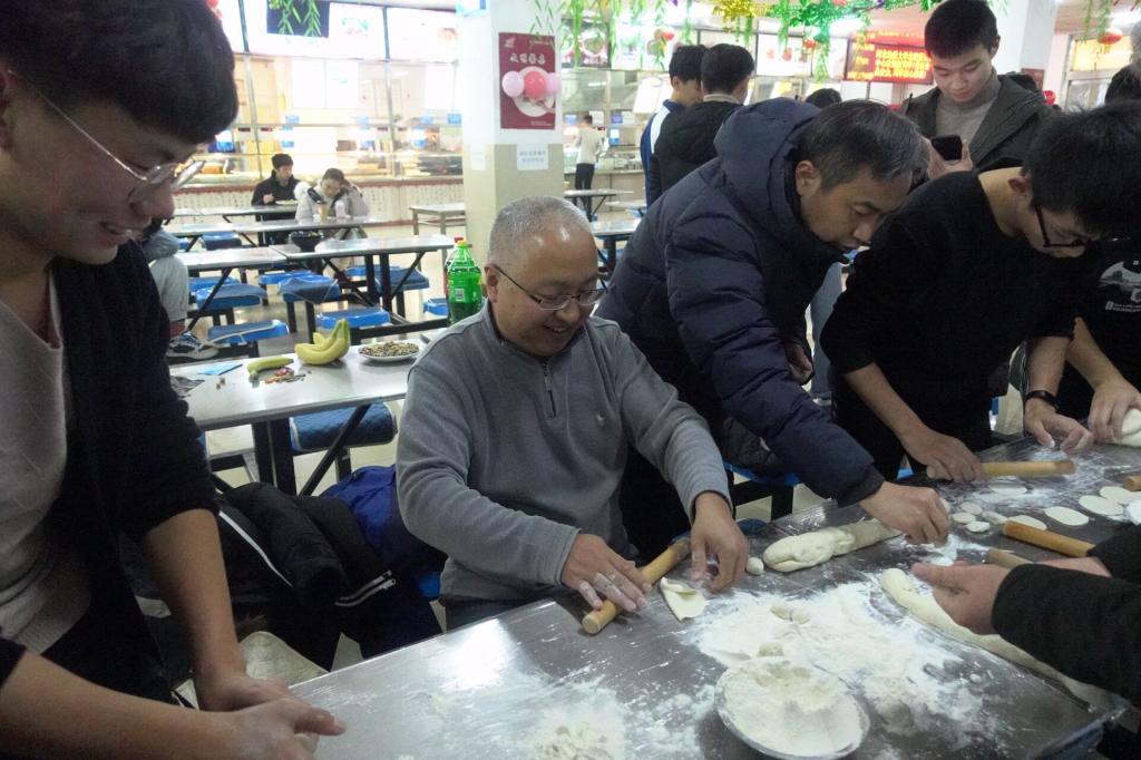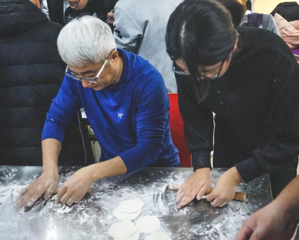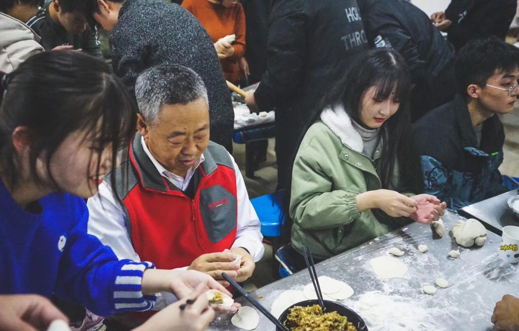 全员全程导师制师生组队环节将活动推向新的高潮,各组同学与导师合影留念,以慷慨激昂、振奋人心的口号开启新的航程。窗外寒意袭人,屋内却是热闹非凡、欢声笑语,师生同乐更加暖心的环节是师生自己动手包饺子庆新年,大家包出来的饺子花样繁多,看着一盘盘别出心裁但都裹满爱意的饺子,看着一张张挂满面粉但都洋溢着温暖幸福的笑容,师生们无比快乐,成就感、幸福感油然而生。别样的欢聚令人难忘,别样的元旦喜庆连连。