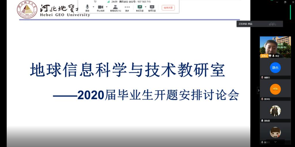 2020年4月16日下午,地球信息科学与技术教研室在腾讯会议平台召开2020届毕业生开题安排讨论会,全体教研室教师参加了会议。