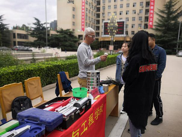 本次参展的岩石波速测定仪、土壤相对密度仪、混凝土弹性模量测定仪、改良性混凝土含气量测定仪、混凝土回弹仪、砖用卡尺、石子针片状规准仪等十几种小型专业仪器设备主要来自于岩石力学实验室、土力学实验室、工程材料实验室。活动现场,学生求知热情高涨,亲自动手对部分展品进行了实际操作。