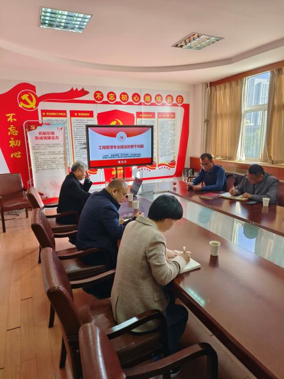 陈立文教授从工程管理专业概况、工程管理专业人才培养方案设计思路、工程管理专业评估(认证)、工程管理国家一流专业建设四个方面进行了详细介绍。报告后和专业教师进行了交流。陈立文教授的报告为我校工程管理、工程造价专业的发展提供了发展的方向和动力。最后贾磊副院长对本次会议做了总结,对陈立文教授的精彩报告表示衷心的感谢!