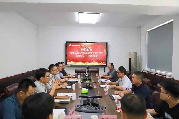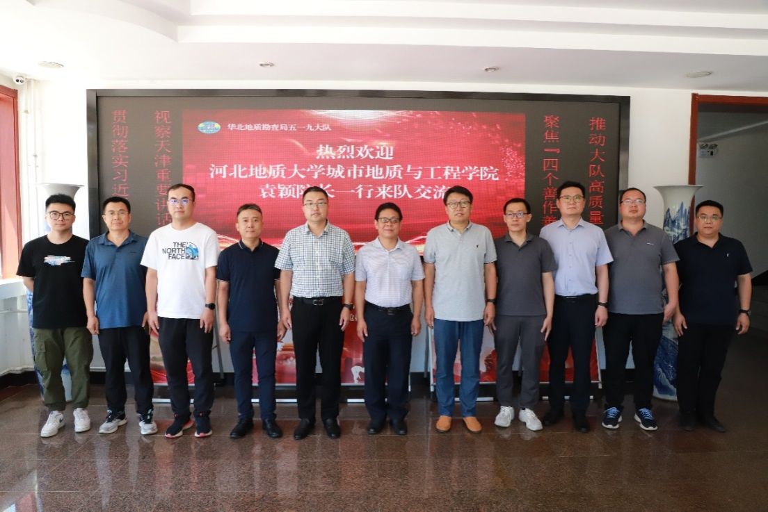 7月18日,以河北省城市地质安全风险防控预警技术创新中心合作建设为契机,袁颖院长带队前往华北地质勘查局五一九大队进行座谈交流。地质灾害防治与地质环境保护科研团队成员李治广、杜国梁、陈燕伟和张文松老师随行参加了此次座谈。五一九大队副队长侯荣夫及相关单位和部门负责人出席了座谈会。