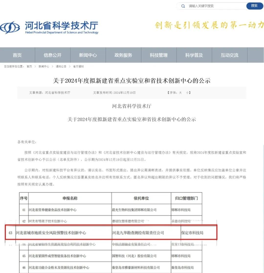近日,河北省科学技术厅传来喜讯,河北九华勘查测绘有限责任公司携手河北地质大学城市地质与工程学院共同申报的“河北省城市地质安全风险预警技术创新中心”成功通过审批并公示。标志着学院在科研创新领域实现了重大跨越,在产学研合作、人才联合培养上跃上崭新台阶。