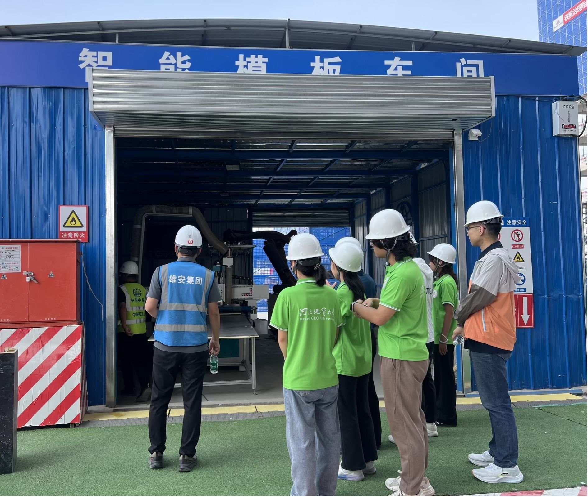 在财富大厦的施工现场,集合设计、勘察、监理、施工等多方力量推进,智能建造成果亮眼,智能模板无人工厂融合智能建造与BIM技术,实现模板生产数字化;地面整平、地库抹光等机器人高效作业,巡检、幕墙机器人各展所长,动火作业监控、配电箱智能化管理等场景,构建智慧工地体系,让工地从“劳动密集型”转变为“技术密集型”,展现了未来建筑行业的智能化方向。师生们亲身感受科技赋能建筑的实践,见证智能建造为雄安“千年大计”注入活力。