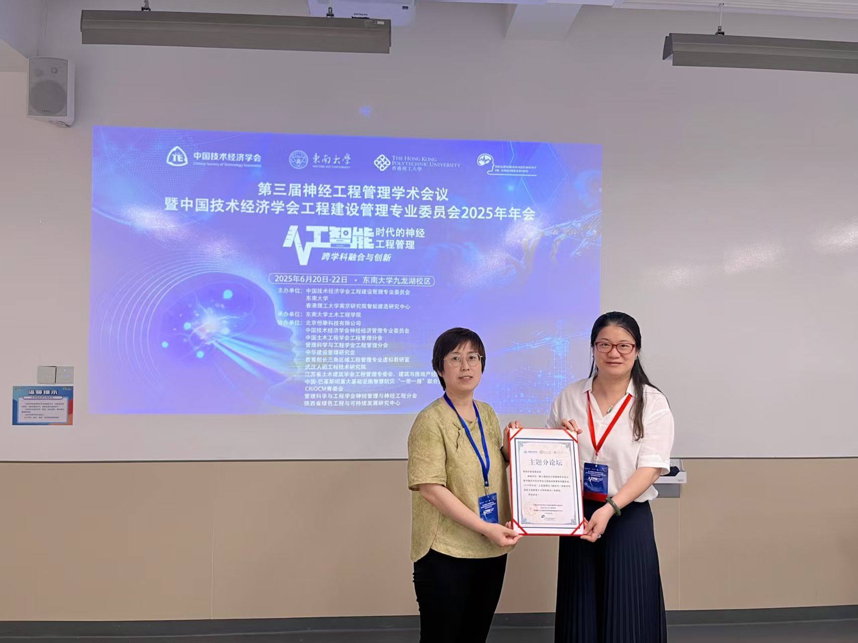 2025年6月20日至22日,我院工程管理系教师喇海霞、霍晓燕和侯永康老师参加了第三届神经工程管理学术会议暨中国技术经济学会工程建设管理专业委员会2025年年会。该会由中国技术经济学会工程建设管理专业委员会、东南大学、香港理工大学南京研究院智能建造研究中心主办,吸引了众多业内专家学者齐聚一堂。