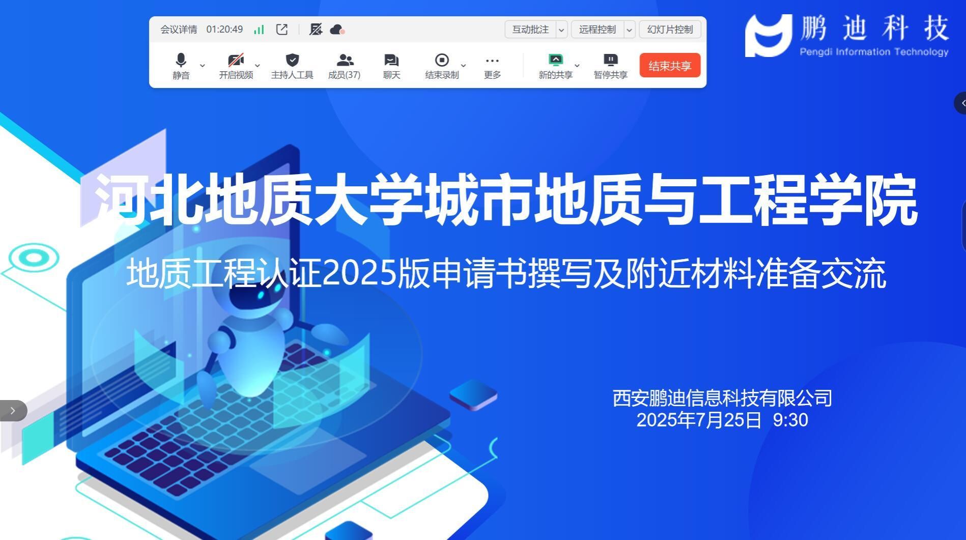 为进一步提升专业内涵建设水平,扎实推进工程教育认证工作,7月25日,城市地质与工程学院通过腾讯会议成功举办了工程教育认证专题培训。学院特邀西安鹏迪咨询机构的王莹琦老师担任主讲,为学院教师带来了一场内容详实、指导性强的专业辅导。