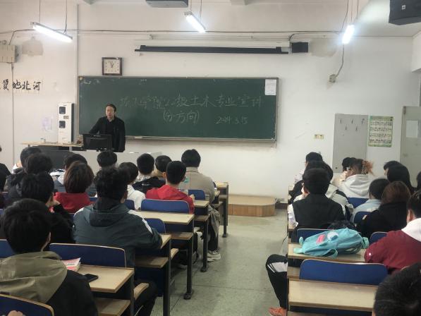 会上,两位主任分别就各个方向(岩土、结构)的专业内涵、发展趋势、课程体系及就业领域及近年考研、就业情况做了系统的介绍,为同学们选择提供了详实的参考;并希望同学们以此为契机积极进行人生规划,认清自我,理性选择,找到自己的人生目标,更好的成长成才。