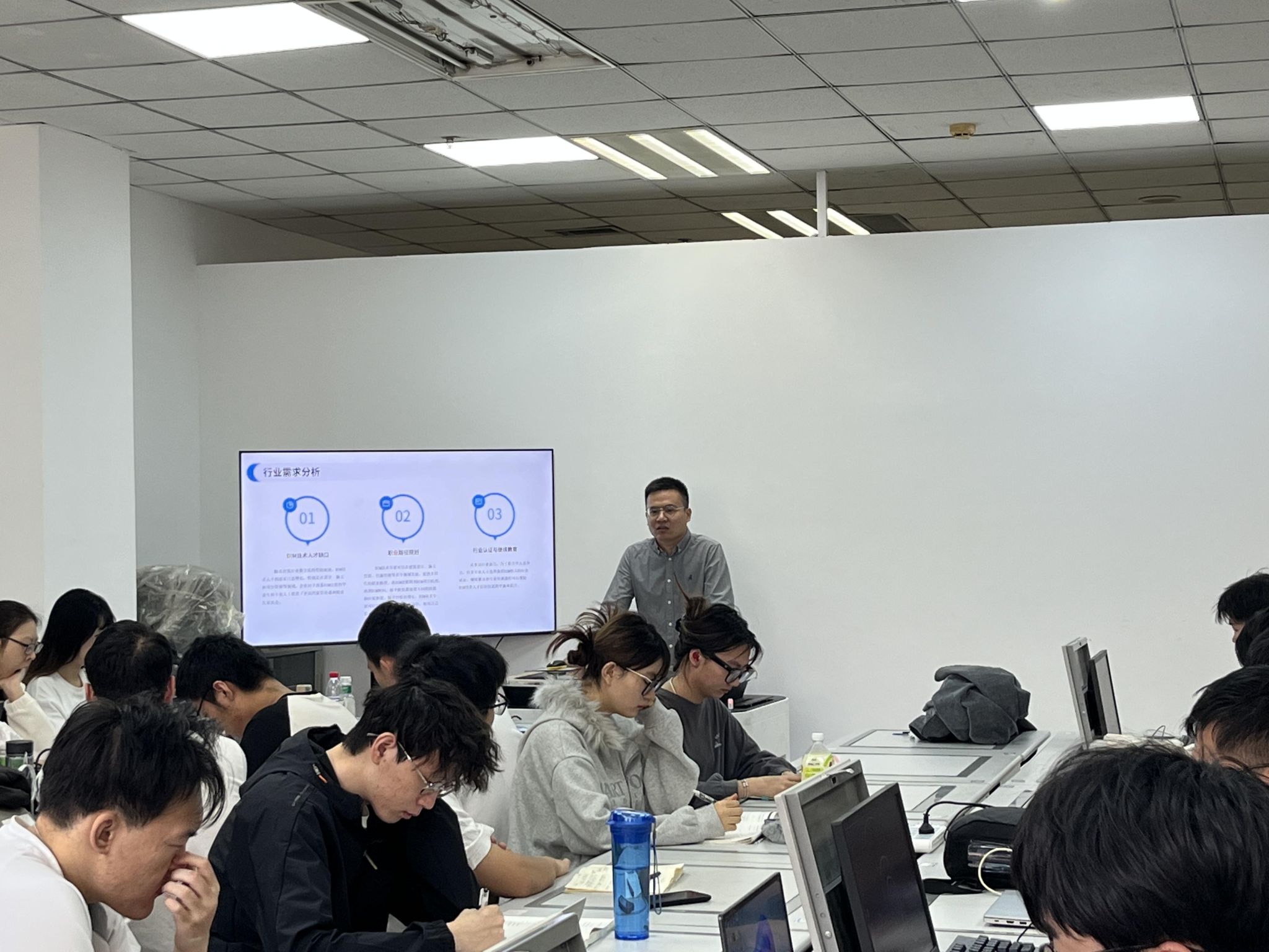 近日,河北冀科工程项目管理有限公司副总经理刘志永高级工程师,在河北地质大学工程管理实验室,进行了“建筑信息模型(BIM)技术”课程讲授。我院相关专业教师以及2021级工程管理专业本科生参加了本次上课。本课程由工程管理系老师高春艳一起授课。