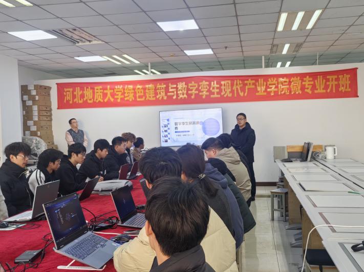 2月28日,由河北地质大学绿色建筑与数字孪生现代产业学院与北京优锘科技股份有限公司联合举办的“数字孪生”微专业课程顺利结课。本次课程于2月24日开班,为期五天,吸引了城市地质与工程学院工程管理专业的众多学生提前返校,踊跃参与学习,展现出极高的学习热情和对前沿技术的浓厚兴趣。结课仪式上,城市地质与工程学院院长袁颖、河北地质大学校友北京优锘科技股份有限公司教育方案总监梁波、工程管理系主任耿东阳、讲师王晓东以及专业教师高春艳出席活动。