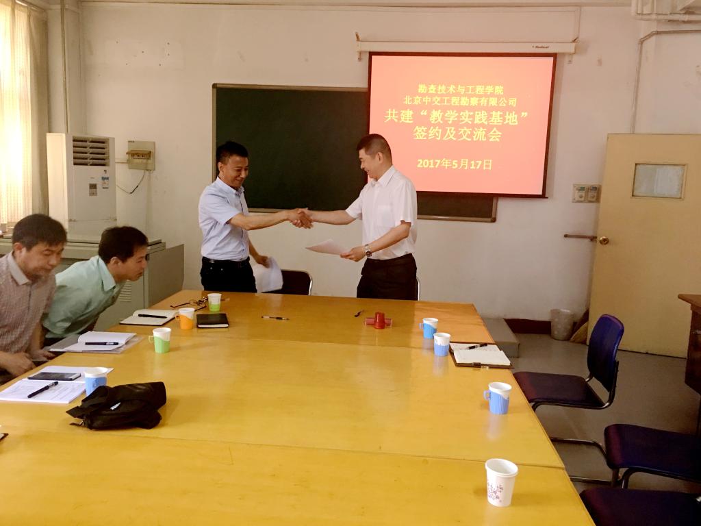 2017年5月17日上午,北京中交工程勘察有限公司总经理张尧禹一行5人到我院考察交流,与我院黄万顺书记、袁颖副院长及相关部门负责人在院会议室座谈,就共建“教学实践基地”与学生就业工作对接交流。