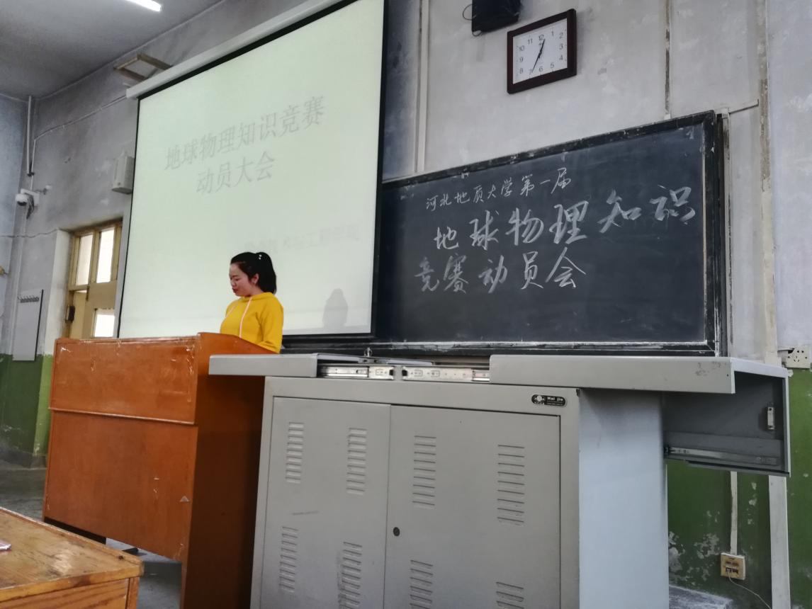 为了树立地球物理类专业学生奉献专业的志向,增强学生的专业归属感,提高学生的专业素质,提升学生的学习激情,培养学生的综合素质,扩大学生的互动与团结,加强低年级新生对本专业的认识,增进上下届学生之间的交流,经过学院领导批准拟开展河北地质大学第一届地球物理知识竞赛。为保证河北地质大学地球物理知识竞赛顺利开展,2018年4月17日中午12:30在教三101教室召开竞赛动员大会,地球物理教研室教师代表、地球物理类学专业各年级学生参加了动员会。