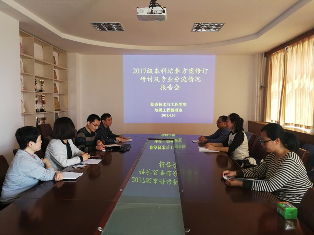 2017级本科生培养方案修订是地质工程教研室的重点工作。2018年4月20日中午校运动会闭幕式之后,地质工程教研室于院会议室召开了2017级本科培养方案再次修订的研讨会,大家畅所欲言,集中探讨了培养目标、培养要求、课程体系设置和实践教学环节等内容的修订情况,教研室全体教师参加了研讨会。