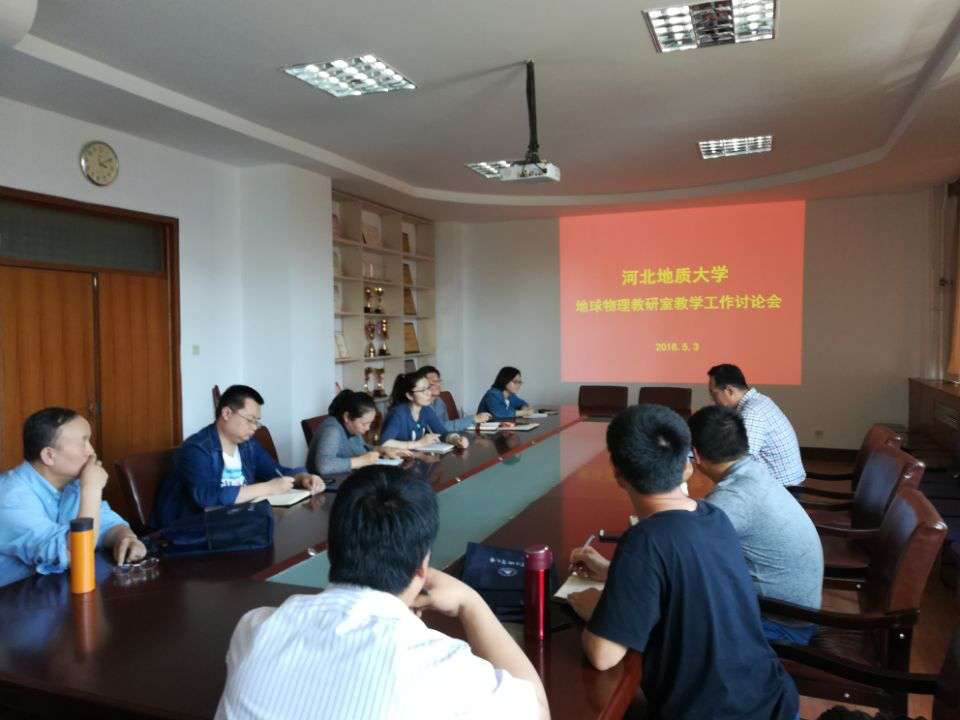 2018年5月3日下午,地球物理教研室主任曹静杰老师召开地球物理教研室专业教学工作讨论会。参会的老师有:孟庆鑫、贾学民、杨歧焱等11名地球物理专业的老师。