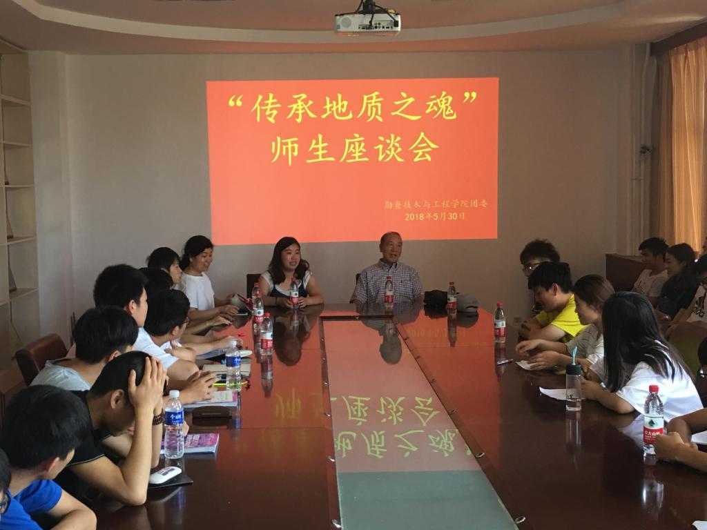 2018年5月30日,勘查技术与工程学院主办的“传承地质之魂”师生座谈会在主楼536会议室召开。
