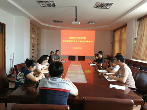 2018年6月21日下午,我院地球物理教研室在曹静杰主任的主持下召开了地球物理学专业大三集中实习筹备会。