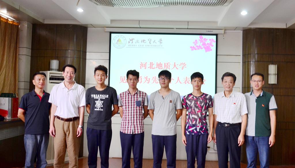 9月14日下午,在主楼四楼会议室召开河北地质大学见义勇为先进个人表彰会。校党委书记李军、党委副书记刘耀辉出席表彰会。党委书记李军向韩敬萱等四名同学颁发“见义勇为先进个人”、“见义勇为好青年”荣誉证书,并为他们献上鲜花。