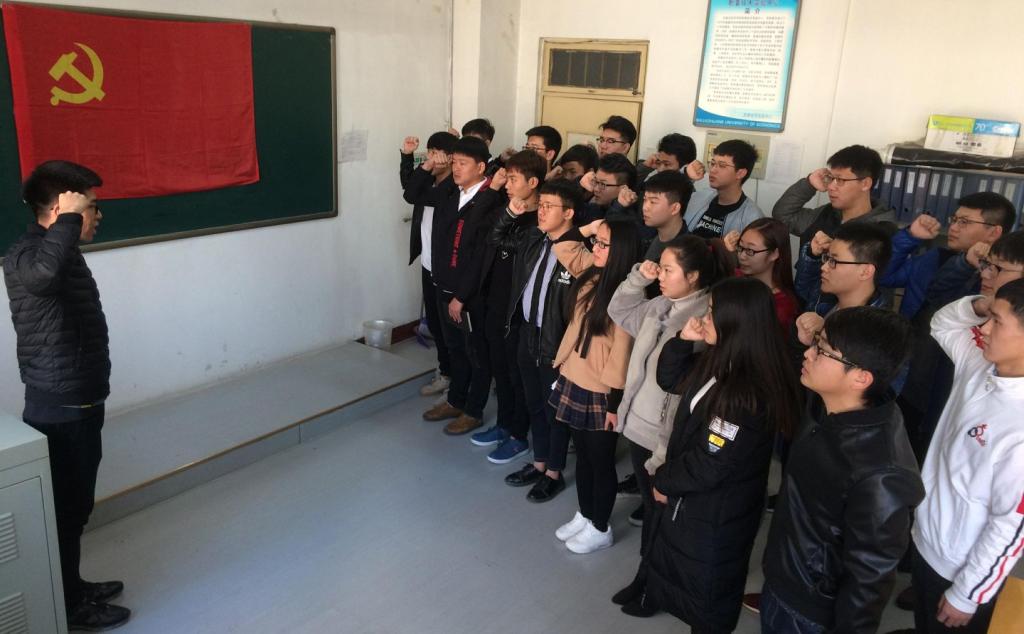 会议中,学生支部对22名入党积极分子重点考察培养对象进行了讨论,经全体党员评议并举手表决,同意接受蒋日超等22名同学加入党组织,成为预备党员。在刘鹏宇同学的带领下,22名新党员在党旗下表达了肺腑之言。场面庄重、严肃、热烈。