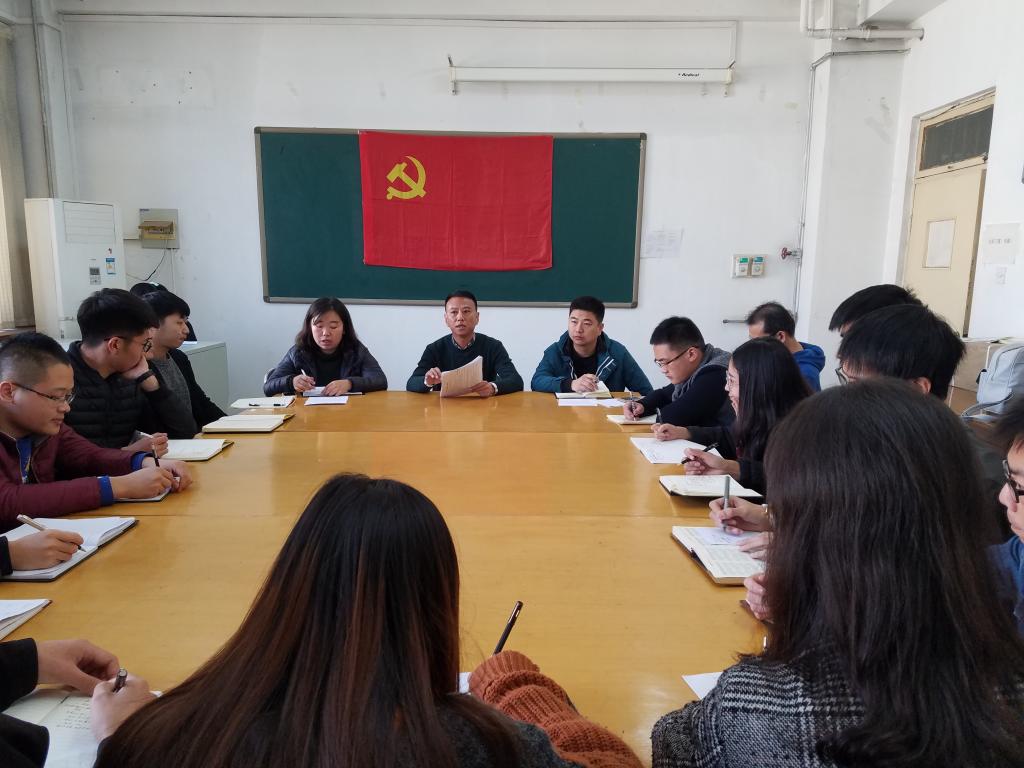 2017年11月15日,勘查技术与工程学院召开学生党支部大会,总支书记黄万顺、辅导员王东东、白志贤、裴文思及全体学生党员参加了会议。会议由学生支部书记朱晓玲主持。