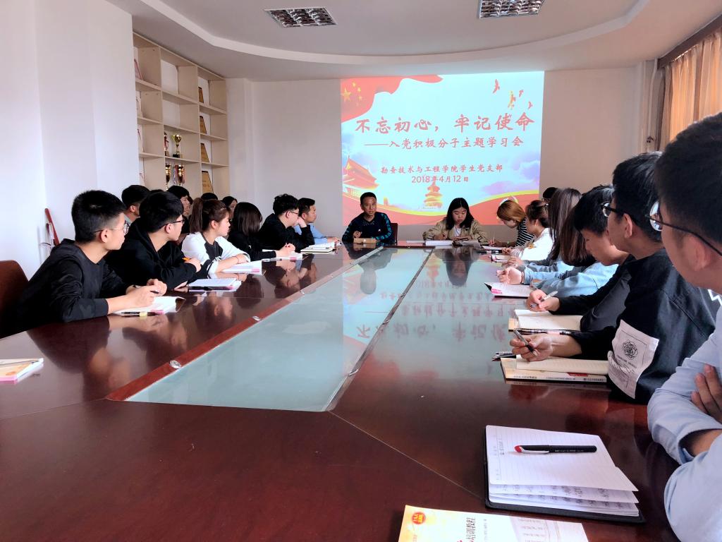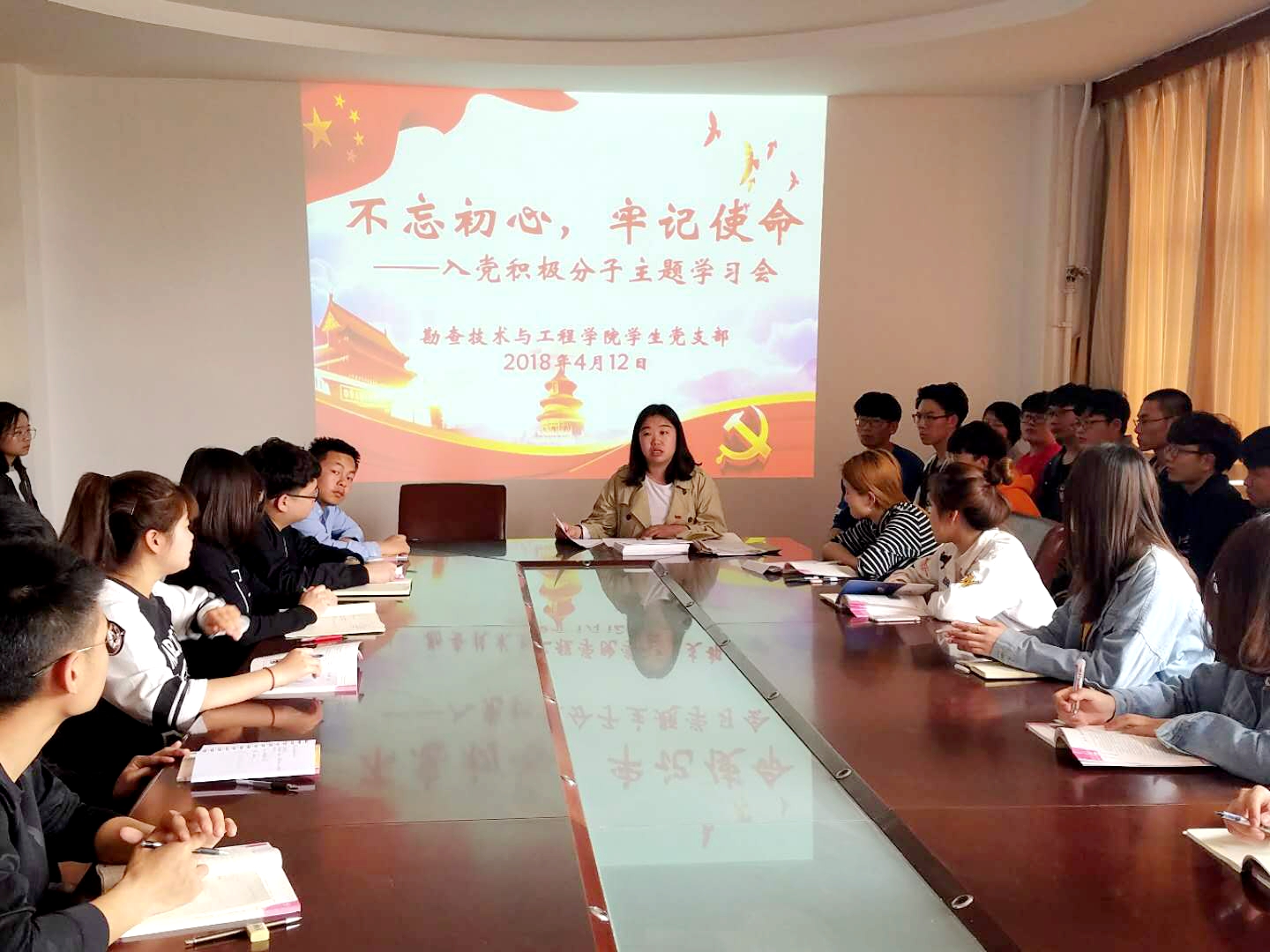 2018年4月12日,勘查技术与工程学院学生党支部组织了“不忘初心、牢记使命”主题教育学习会。参加此次会议的有总支书记黄万顺、学生党支部书记朱晓玲,及全体学生党员和入党积极分子。
