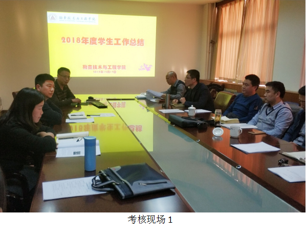 2018年12月14日下午,由学生工作处领导和老师会同组织部、人事处领导来到勘查技术与工程学院进行学生工作年终考核,学院党总支书记、辅导员参加了会议。