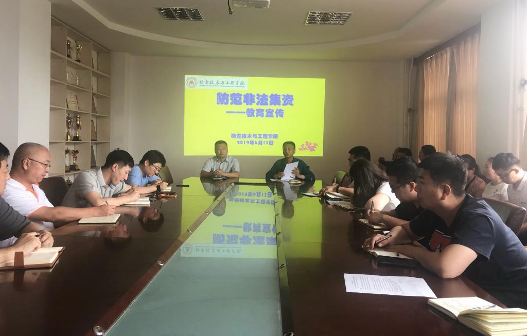 6月13日下午,学院召开了防范非法集资教育宣传会,党政领导班子成员及全体教职工参加了会议。