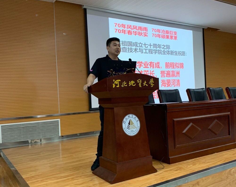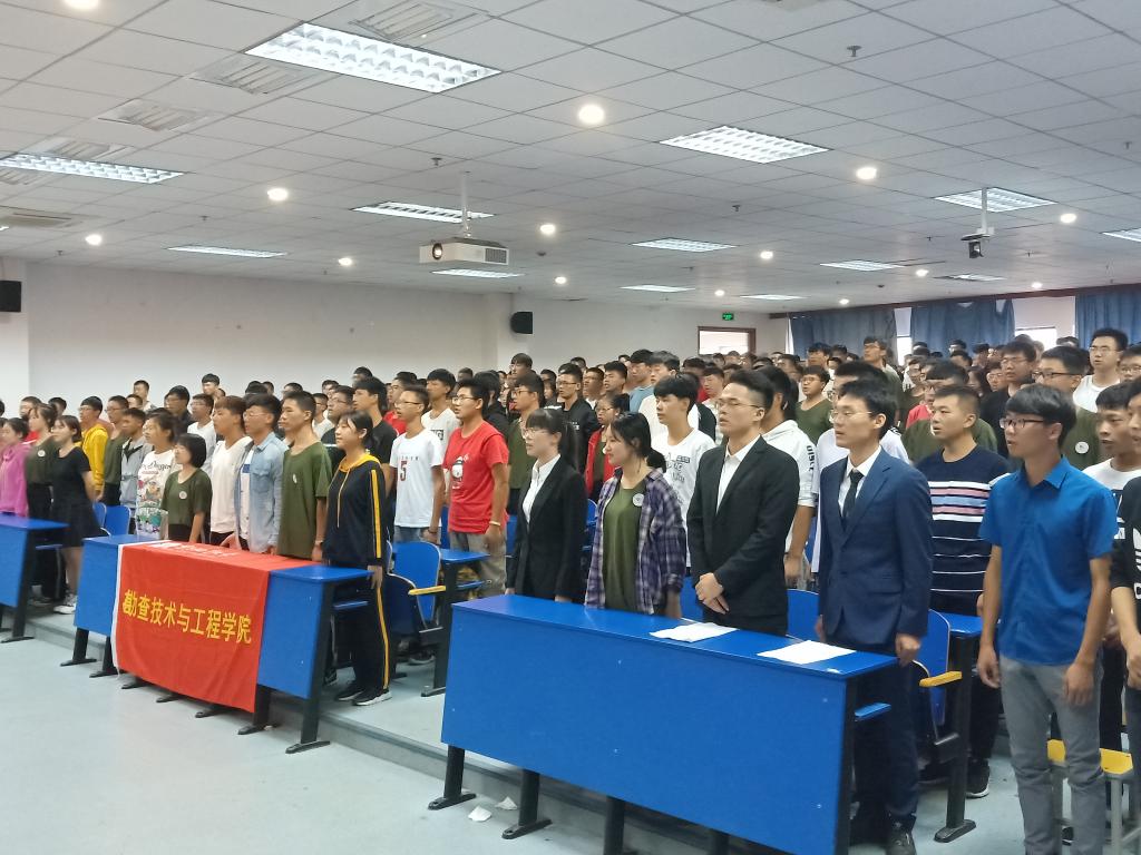 为隆重庆祝中华人民共和国成立70周年,大力唱响礼赞新中国、奋进新时代的青春主旋律,勘查技术与工程学院于2019年9月11日12时30分在图书馆401开展以“我与祖国共奋进——国旗下的演讲”为主题的团日活动。王东东老师出席本次活动,团委主要学生干部及2019级全体新生参加了活动。
