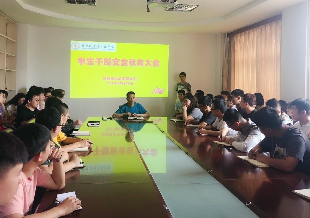 2019年9月17日,在主楼536会议室召开全院学生干部安全教育大会。全体辅导员、各年级学生党员、学生干部及宿舍长共计120余人参加。大会由党总支书记黄万顺主持。