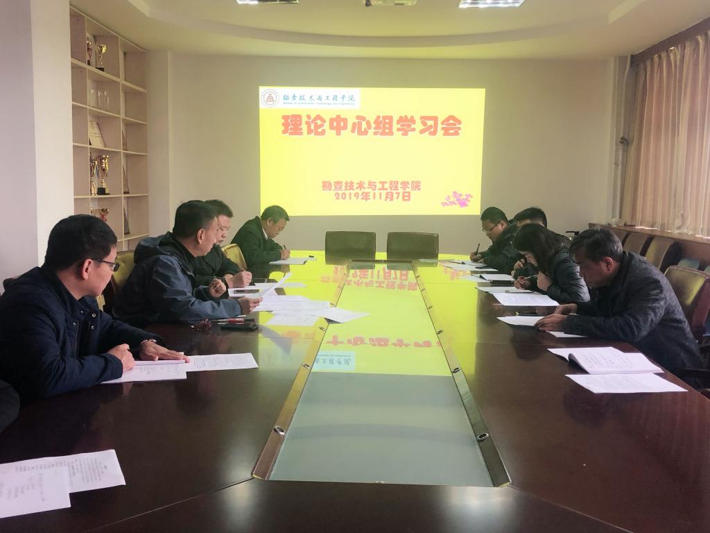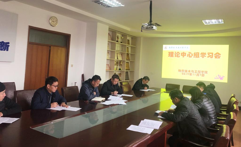 11月7日上午,学院党总支理论学习中心组在主楼536会议室举行学习会,按照《河北地质大学党委理论学习中心组学习规则》、《河北地质大学各分党委、党总支、直属党支部理论学习中心组学习规则》要求,以习近平新时代中国特色社会主义思想为指导,聚焦主题认真学习习近平总书记关于“不忘初心、牢记使命”的重要论述,跟进习近平总书记最新重要进话和中央政策精神,结合融合实际工作,开展集中学习,围绕“加强政治建设,坚定理想信念”、“强化立德树人根本,全面从严育人治教”、“深化教育教学改革、推动内涵式高质发展”三个方面专题研讨交流。党总支书记黄万顺主持会议。