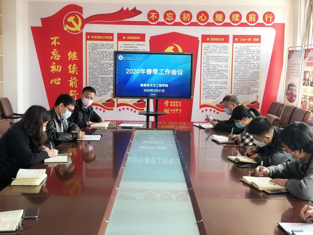 2020年3月31日上午,在主楼536会议室,学院召开了2020年春季工作会议,学院领导及全体科级干部参加了会议。本次会议采取视频会议形式,其他教职工在家收看会议直播。