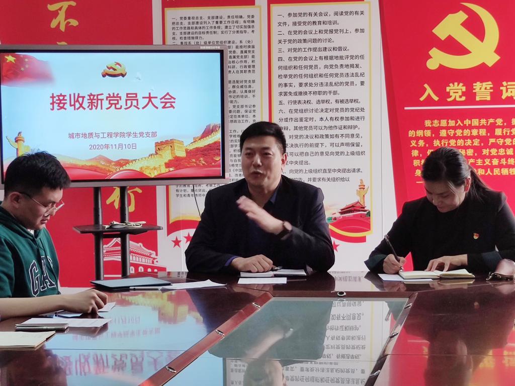 2020年11月10日下午,城市地质与工程学院学生党支部在主楼536会议室召开支部大会,讨论于圣杰等44名入党积极分子的入党申请。党委副书记王辉及辅导员董宇仓老师出席会议,学生党支部书记裴文思主持。本次会议参会党员共27名,会议严格按照组织发展程序进行。
