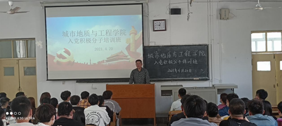 2021年4月20日中午,河北地质大学城市地质与工程学院第十期入党积极分子培训班在教三102教室正式开班。学院党委书记张卫华、党委副书记王辉出席此次开班动员会,张卫华书记在会上做了动员讲话。