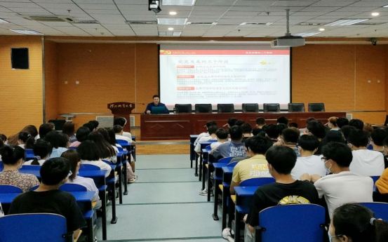 首先王辉书记带领同学们了解了全民学习党史的必要性和深远意义,通过了解党各届领导人的重要讲话指出我们要想实现中华民族伟大复兴必须先学习党史,了解党史,深刻体会党史,以史鉴今,只有从实践经验中才能学到立国,兴国的智慧。其次王书记介绍了党的百年历程中的新民主主义革命时期,社会主义革命和建设时期,改革开放时期和如今的中国特色社会主义新时代。每个时代都有每个时代的责任和使命,在这百年沧桑里,中国共产党带领中国人民从站起来,富起来到强起来,每一步都无比艰难但每一步都脚踏实地。通过历史告诫我们作为与新时代同向同行,共同前进的青年一代,生逢盛世,肩负重任,不应每日碌碌无为,沉迷自己的舒适圈不思进取,不应吝啬和荒度这令人艳羡的青春芳华,应努力学习科学文化知识,积极参与社会实践活动,努力提高自身价值回报社会,要爱集体,爱国家,用自身才华和青春风采贡献祖国。最后王书记勉励2020级全体学生在今后学习发展的路上可以做到立大志,明大德,成大才,担大任,要践行崇学明德,知行合一的院训。