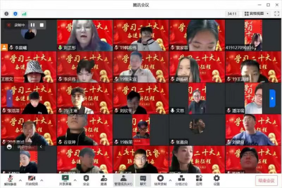 在学院党委的指导下,11月3日下午,学生党支部通过腾讯会议召开了“学习二十大奋进新征程”主题活动,全体党员(预备党员)41人参加了学习活动,会议由学生党支部书记裴文思主持。