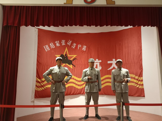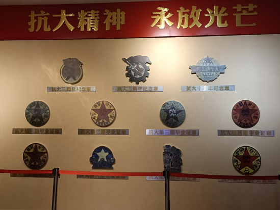 中国人民抗日军政大学陈列馆简称“抗大纪念馆”,如今被确定为“全国爱国主义教育示范基地”。在讲解员的带领下,师生走进了抗大纪念馆,认真聆听了抗大曲折的建校史和艰苦卓绝的战斗史,观看了陈列着的大量图片和实物。同学们回忆着红军老一辈抗战那个年代,追溯朱德、邓小平、刘伯承、罗瑞卿、滕代远、何长工、齐心等老一辈无产阶级革命家的足迹和身影,感受着他们和广大抗大学员一道艰苦生活、学习、战斗,一起度过的峥嵘岁月。散落的纺车、破烂的水桶、一幅幅油画、一件件生活用具,像是在诉说那自力更生、团结奋进的激情场面;大刀、长矛、步枪、手雷和缴获物质正在倾诉着不畏艰难、奋力抗争的坚强意志。