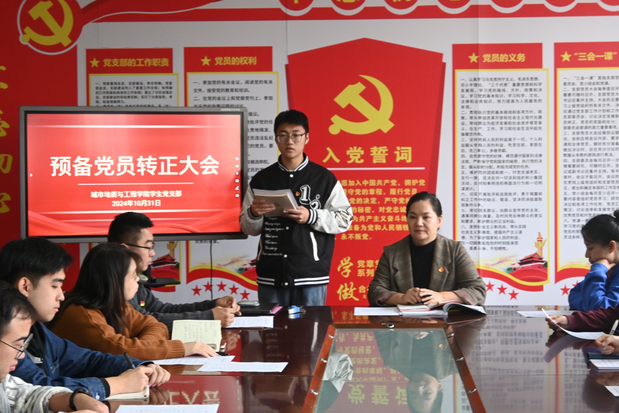 10月31日,学院学生党支部在主楼536党建活动室召开了支部大会,讨论韩文活等8名预备党员的转正申请。会议由学生党支部书记裴文思主持,全体党员(预备党员)参加了大会。