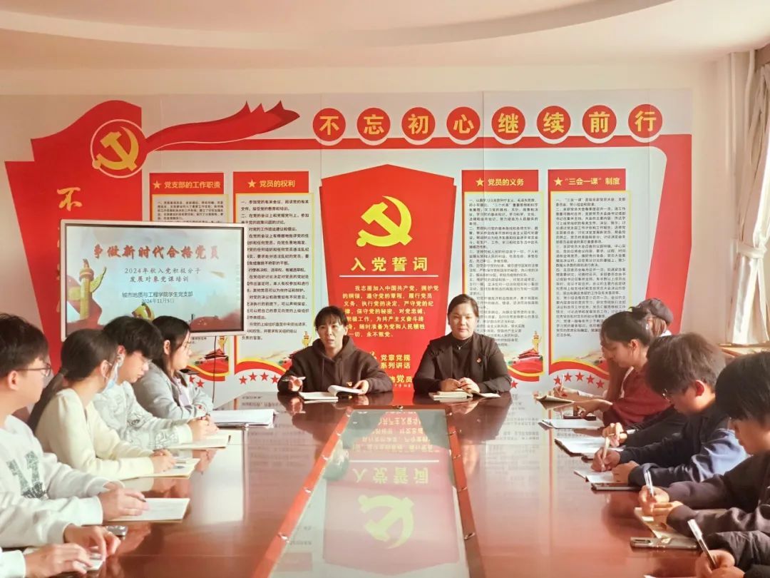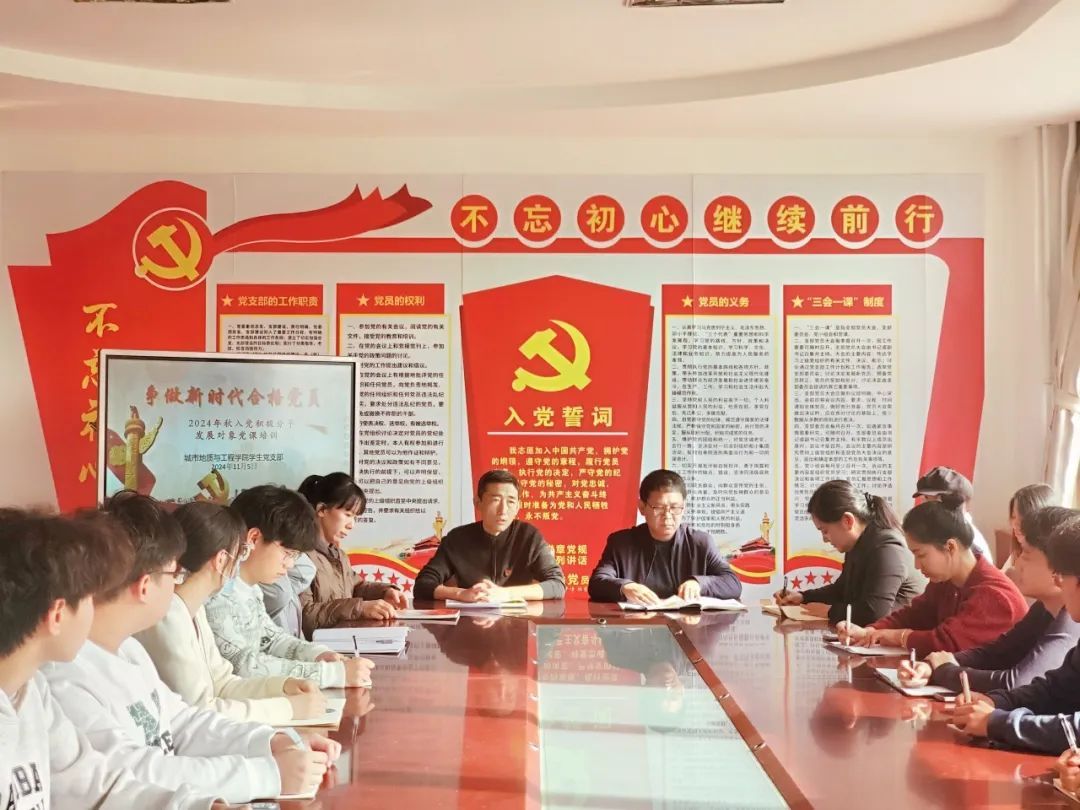 根据校党委组织部相关通知要求,结合城市地质与工程学院实际情况,学院党委精心组织安排,于11月5日—11月12日开展了2024年秋季入党积极分子、发展对象党课培训系列活动。旨在进一步加强和提升党员发展工作,提高入党积极分子和发展对象的思想政治素质,引导他们坚定理想信念,积极向党组织靠拢。