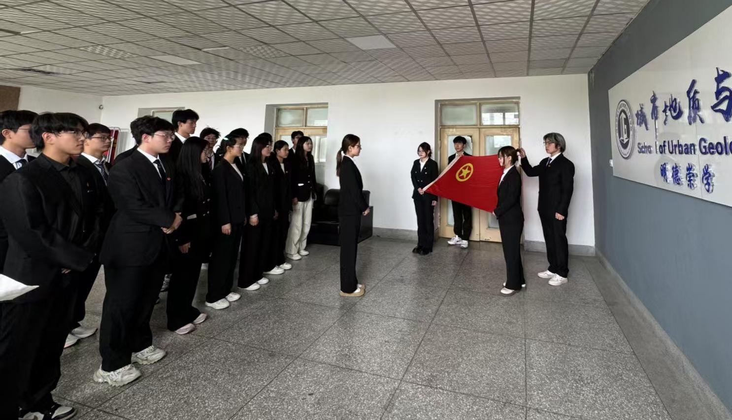 未来属于青年,希望寄予青年。在五四青年节到来前夕,城市地质与工程学院团委4月29日在主楼8楼大厅组织青年团员代表再次重温入团誓词,激励广大青年坚定青春信仰、理想信念,增强团员的先进性、光荣感、使命感以及对共青团组织的认同感和归属感。