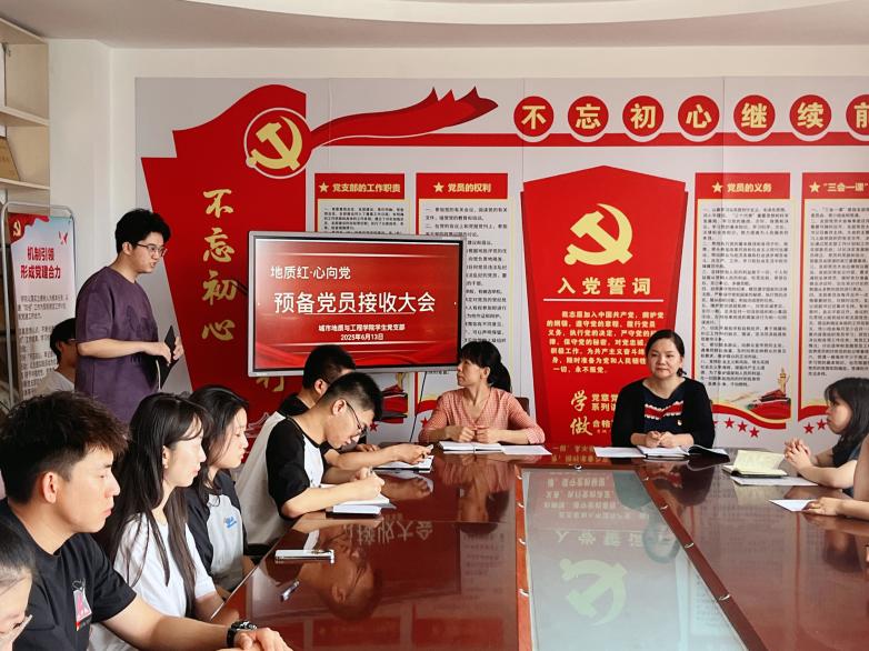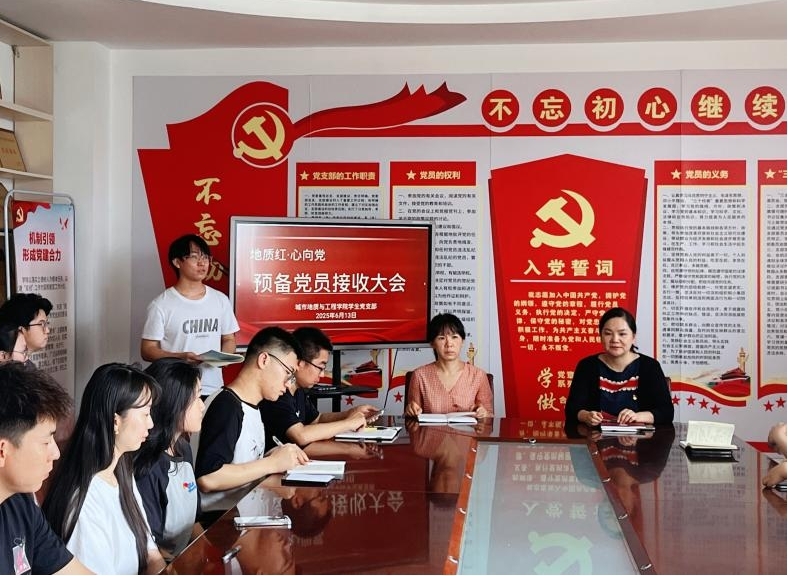 为进一步加强党员队伍建设,充实党组织新生力量,2025年6月13日,城市地质与工程学院学生党支部在学院会议室召开新党员接收大会,讨论并表决接收12名发展对象为中共预备党员。党委副书记李蕊、辅导员郭伟红、郭晨燕、高雯琪老师及全体党员(预备党员)参加了大会,会议由党支部书记裴文思主持。