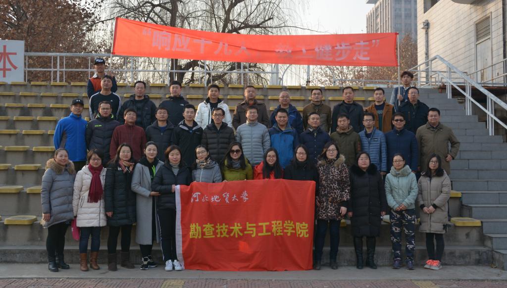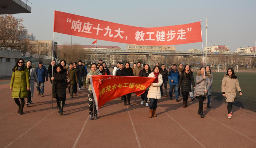 2017年12月27日下午,为了积极响应校工会学习十九大号召,勘查技术与工程学院工会组织“响应十九大,教工健步走”的活动。全院教职工精神饱满,热情高涨的在校操场参加了此次活动。