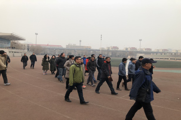 下午4:30,,全体教职工准时到达操场,健步走活动正式开始。院领导一马当先,引领大家积极参与。一路上大家都兴致高昂、阔步向前,欢快的笑语、携手的鼓励,形成一道亮丽风景线。