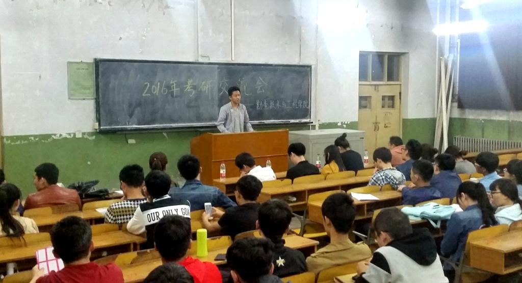 交流会在主持人简短的介绍后开始。交流会中,在2016年考研中以优异成绩被中国科学院大学录取的刘帅奇同学及各专业取得优异成绩的同学将各自在考研路上所遇到的困难及解决的方法和经验分享给同学们,使同学们收获颇丰。随后在现场提问中他们根据同学们所提出的问题作了详细解答。整场交流会现场激情洋溢,同学们精神饱满。但由于时间问题,此次交流会在同学们热烈的掌声中走向了尾声!会后,仍有许多同学找到学长学姐咨询,学长学姐都给出了宝贵经验。