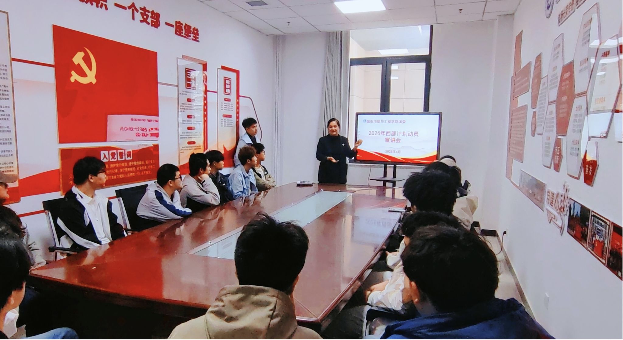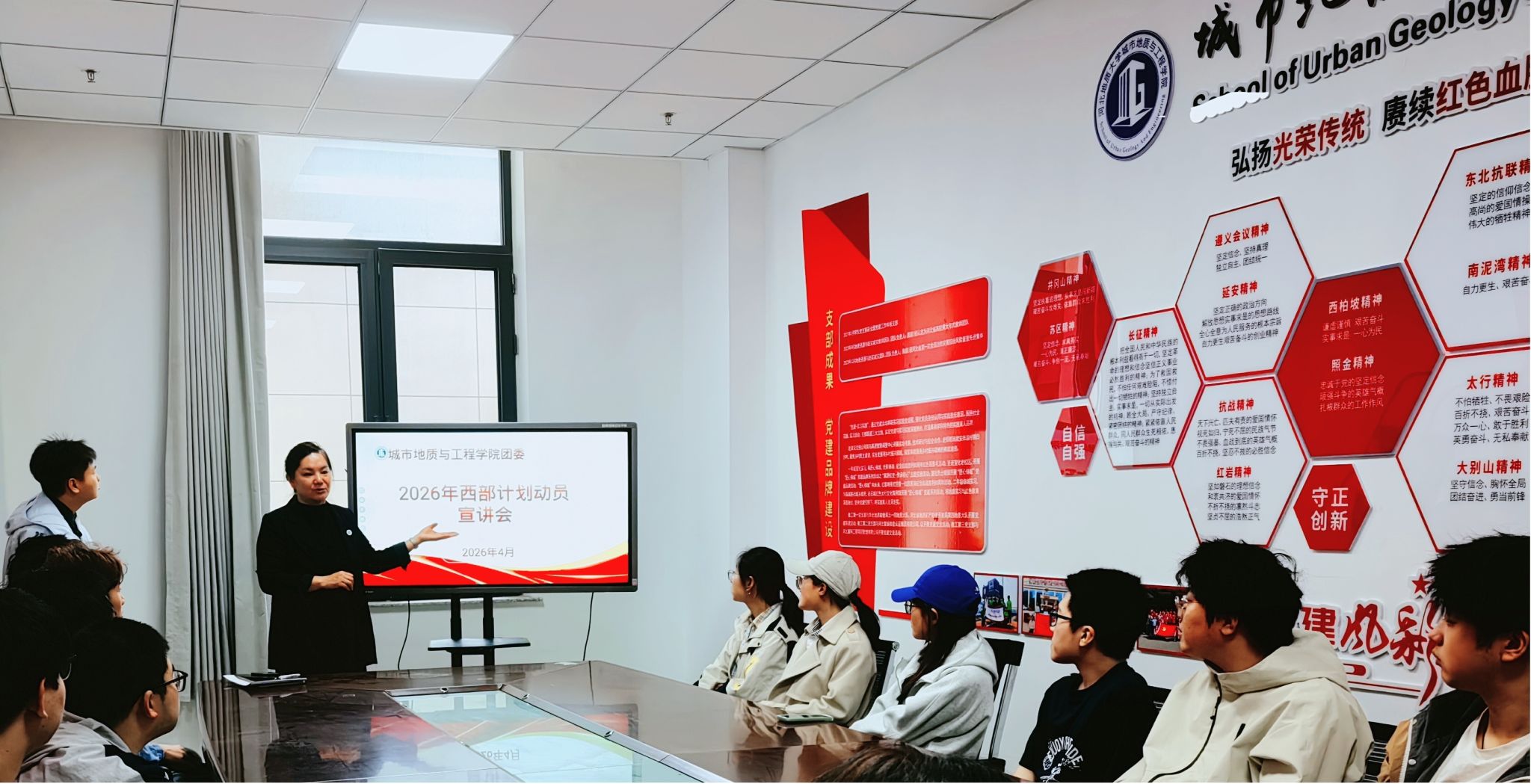 为积极响应国家“报效祖国、建功西部”的号召,引导广大青年学子将个人理想融入国家发展大局,切实做好2026年大学生志愿服务西部计划招募动员工作,近日,城市地质与工程学院分团委在学院党团活动室召开了2026年西部计划动员宣讲会,毕业班辅导员和有意向参与的学生代表参加本次活动。