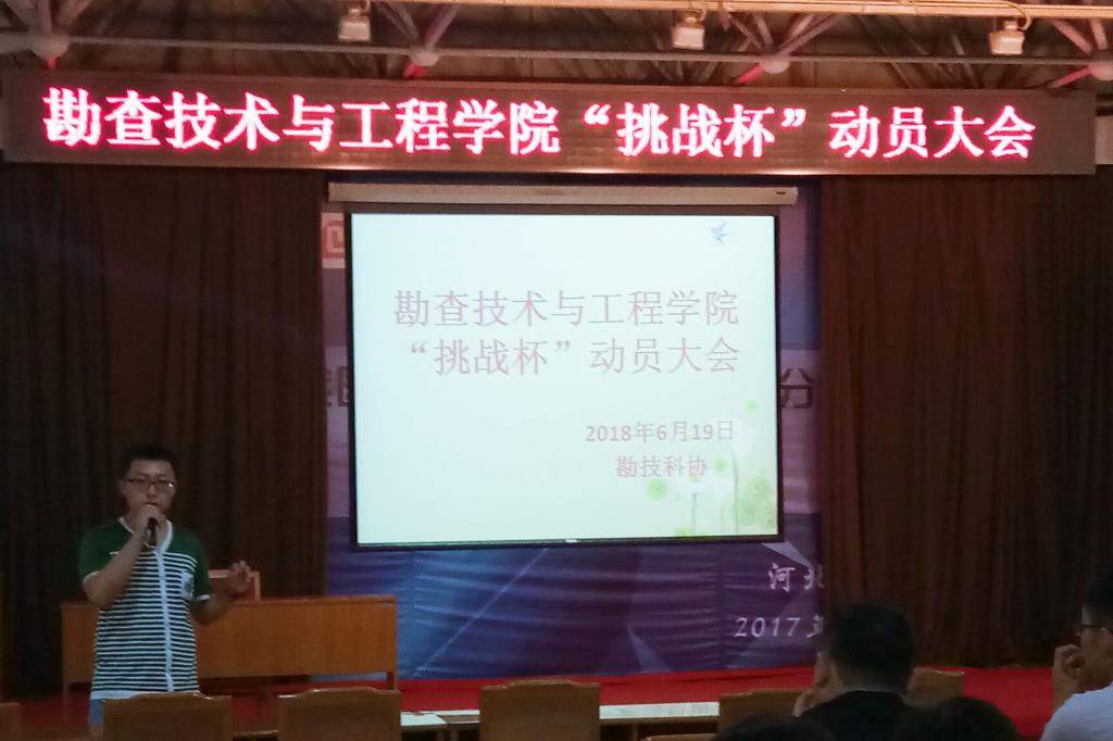 “挑战杯”全国大学生课外学术科技作品竞赛是大学生课外学术科技活动中一项具有导向性、示范性和群众性的竞赛活动。为了使同学们对此活动有更深入的了解,积极参加,由我院学生科协组织的“挑战杯”宣讲动员会于2018年6月19日下午17:00点在科技报告厅举行,特邀我院即将离校的优秀毕业生任朋同学主讲。