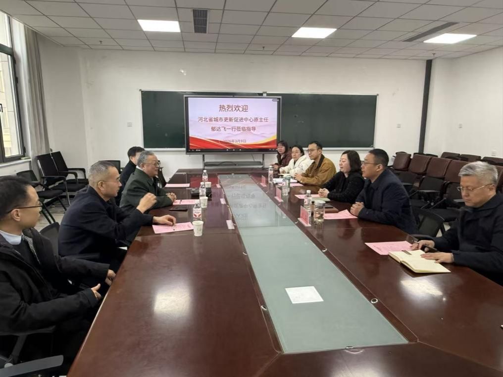 河北省住房和城乡建设厅原二级巡视员郁达飞,河北建设集团石家庄分公司副总经理杨冰,河北德昌建筑工程集团有限公司董事长马占录受邀出席,学院党委书记张凝宁、院长贾磊及防灾减灾实验室全体教师参会,会议由贾磊院长主持。